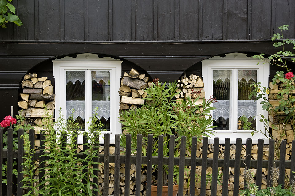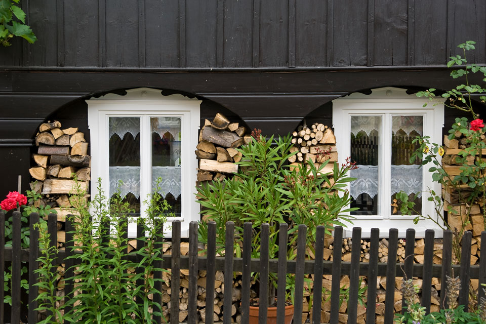 Detail Umgebindehaus mit Brennholz® Urheberrecht bei: Peter Hennig